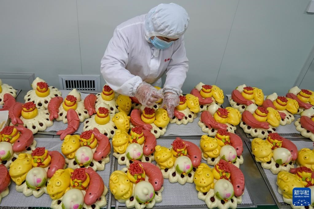 2月17日,威海長林生態(tài)農(nóng)業(yè)有限公司員工清點(diǎn)即將發(fā)運(yùn)的花餑餑產(chǎn)品。新華社記者 朱崢 攝