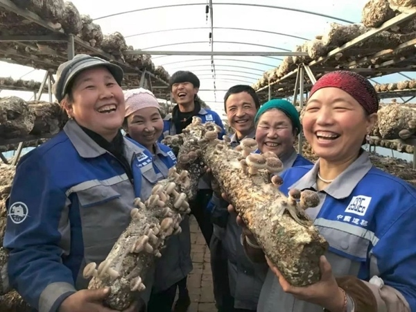 中建二局第二任駐村書記牛軍帥帶領(lǐng)村民種植香菇獲豐收。(受訪者供圖)