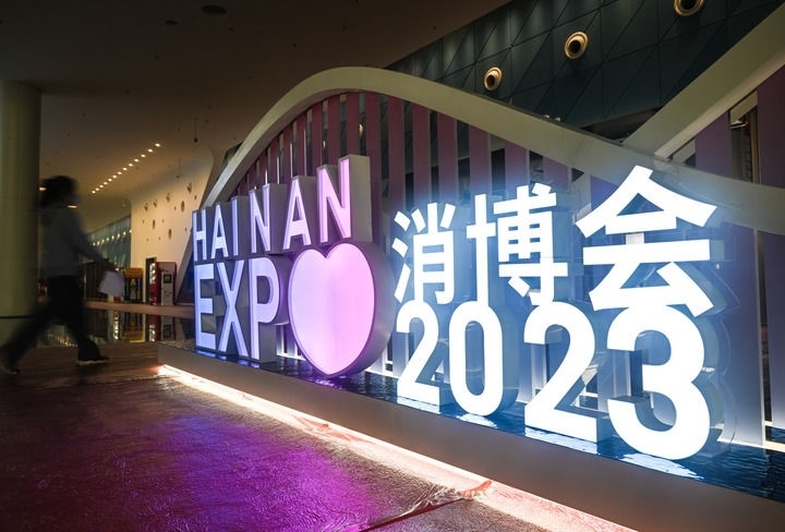 4月8日拍攝的第三屆中國國際消費(fèi)品博覽會展館內(nèi)部場景。新華社記者 蒲曉旭 攝