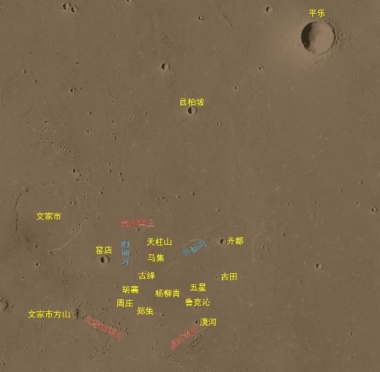 科學(xué)研究團(tuán)隊(duì)通過火星高分影像,識(shí)別了著陸點(diǎn)附近大量的地理實(shí)體,國(guó)際天文聯(lián)合會(huì)根據(jù)相關(guān)規(guī)則,將其中的22個(gè)地理實(shí)體,以中國(guó)人口數(shù)小于10萬(wàn)的歷史文化名村名鎮(zhèn)加以命名。將中國(guó)標(biāo)識(shí)永久刻印在火星大地。