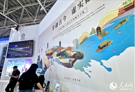 “我們對(duì)北京中軸線的場景進(jìn)行了復(fù)刻,構(gòu)筑了中軸線元宇宙,如果游客觀光北京中軸線上的打卡點(diǎn),用手機(jī)掃描眼前的景色,就會(huì)出現(xiàn)現(xiàn)實(shí)與虛擬交織的場景,仿佛穿越古今,置身于千百年前的時(shí)空?!北本┖訄D公司工作人員陳頌在展會(huì)現(xiàn)場介紹說。
