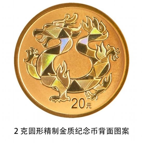 2克圓形金質(zhì)紀念幣背面圖案為裝飾龍造型,并刊面額。