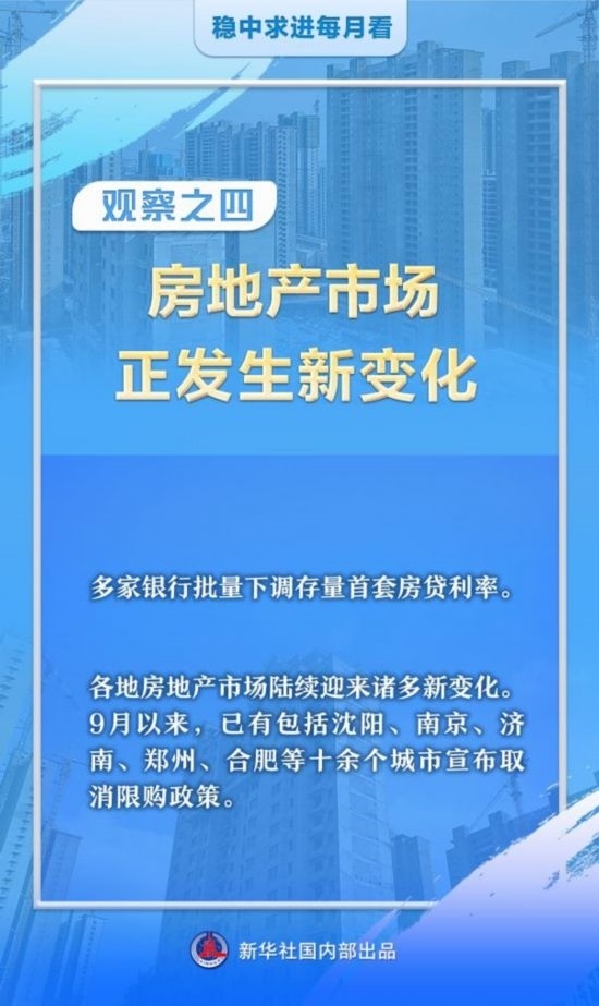 除了批量下調(diào)存量首套房貸利率,各地房地產(chǎn)市場(chǎng)陸續(xù)迎來諸多新變化。9月以來,已有包括沈陽(yáng)、南京、濟(jì)南、鄭州、合肥等十余個(gè)城市宣布取消限購(gòu)政策。具體看,沈陽(yáng)從取消限購(gòu)限售、優(yōu)化住房信貸等8個(gè)方面出臺(tái)26條政策措施;南京在全面取消限購(gòu)的同時(shí),為縮短二手房出售和新房購(gòu)買周期,推出“換新購(gòu)”服務(wù)……