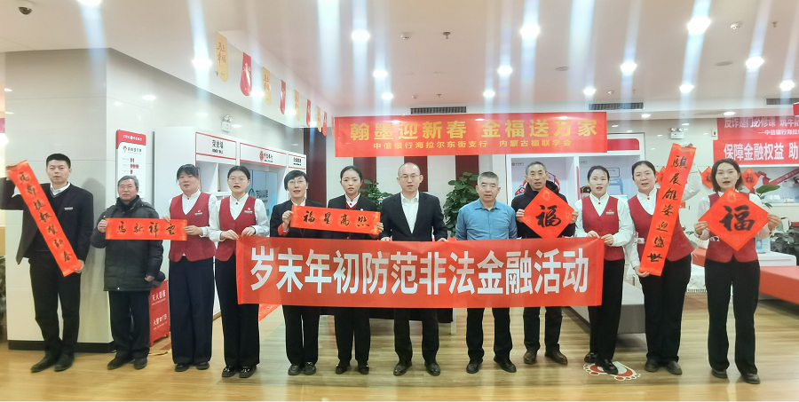 為營造喜慶祥和的新春氛圍,切實提升轄區(qū)群眾防范非法金融活動的意識和能力,近日,中信銀行呼和浩特海拉爾東街支行聯(lián)合內(nèi)蒙古楹聯(lián)學會,開展“翰墨迎新春 金福送萬家”主題活動,將傳統(tǒng)春聯(lián)文化與金融反詐知識深度融合,為市民送上一份別樣的“新春安全禮”。