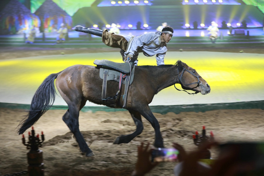 2017年,黃花溝草原旅游區(qū)傾力打造了一臺游牧風情實景演藝《相會敖包》。2020年7月2日,《相會敖包》在黃花溝草原旅游區(qū)窩闊臺大劇院進行了首演。該劇以蒙古族傳統(tǒng)的敖包祭祀儀式和那達慕活動為創(chuàng)作原型,以特色濃郁的蒙古族歌舞器樂為表現手法,藝術地呈現了敖包祭祀的神圣莊嚴和草原兒女對敖包的深厚情感以及那達慕大會的歡騰景象,表達了蒙古族群眾崇尚自然的理念,讓觀眾進一步領略敖包文化的豐富內容和深邃內涵。(完)