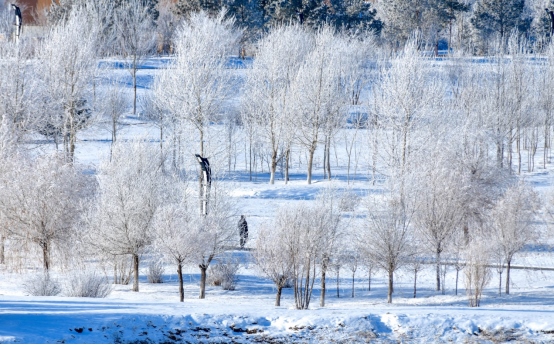 12月1日,內蒙古自治區(qū)呼倫貝爾市出現(xiàn)霧凇奇觀,海拉爾區(qū)沿河公園整片樹林被白霜覆蓋,晶瑩剔透,分外美麗。