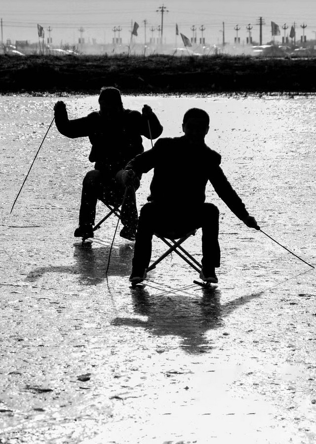 ?、俣冻怎r魚;②冬釣。
