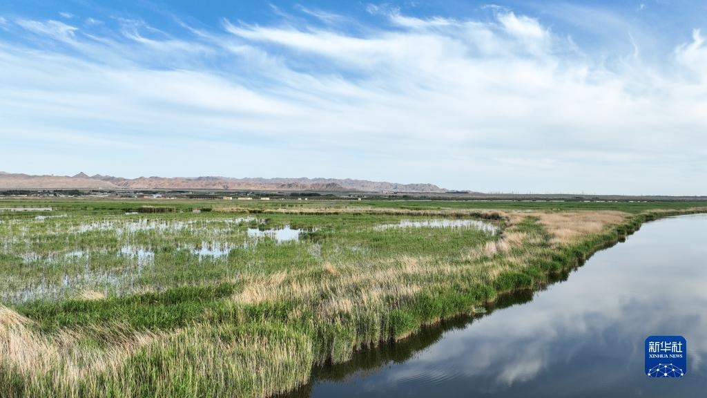 這是6月4日拍攝的位于內(nèi)蒙古巴彥淖爾市烏拉特前旗的烏梁素海(無人機照片)。