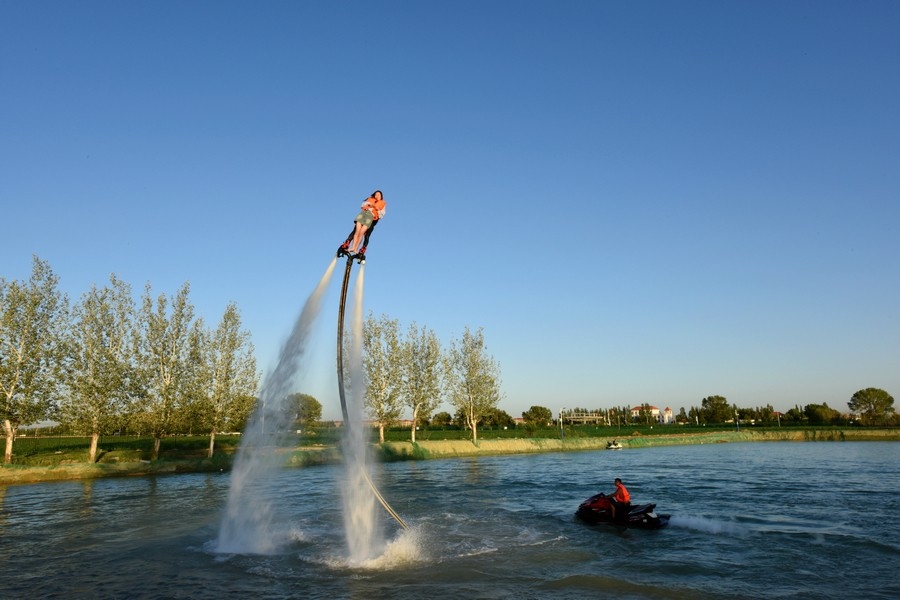 游客在體驗水上飛人 記者 張楊攝影