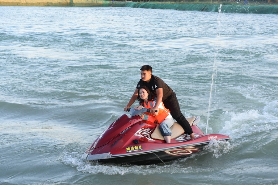 游客乘坐摩托艇感受水上的驚險刺激 記者 張楊攝影