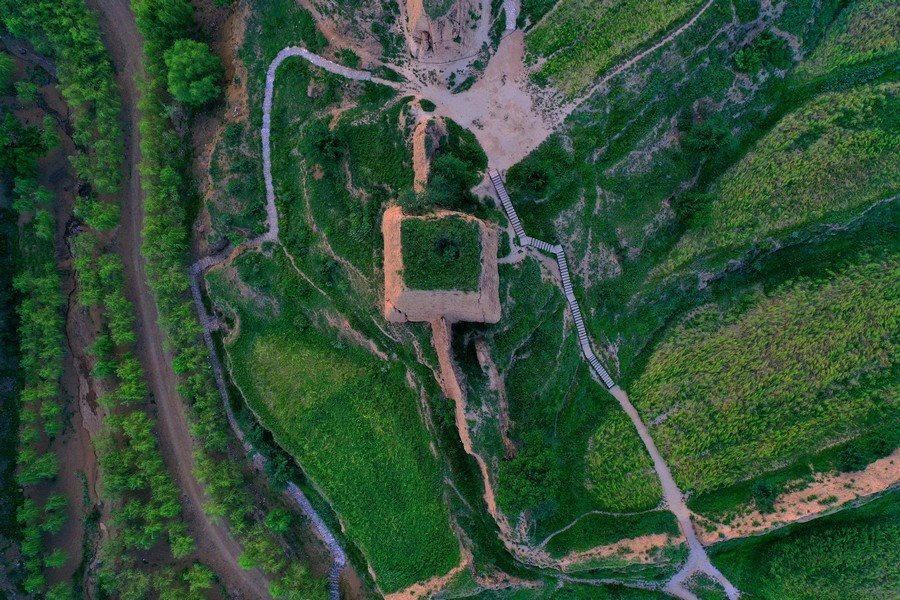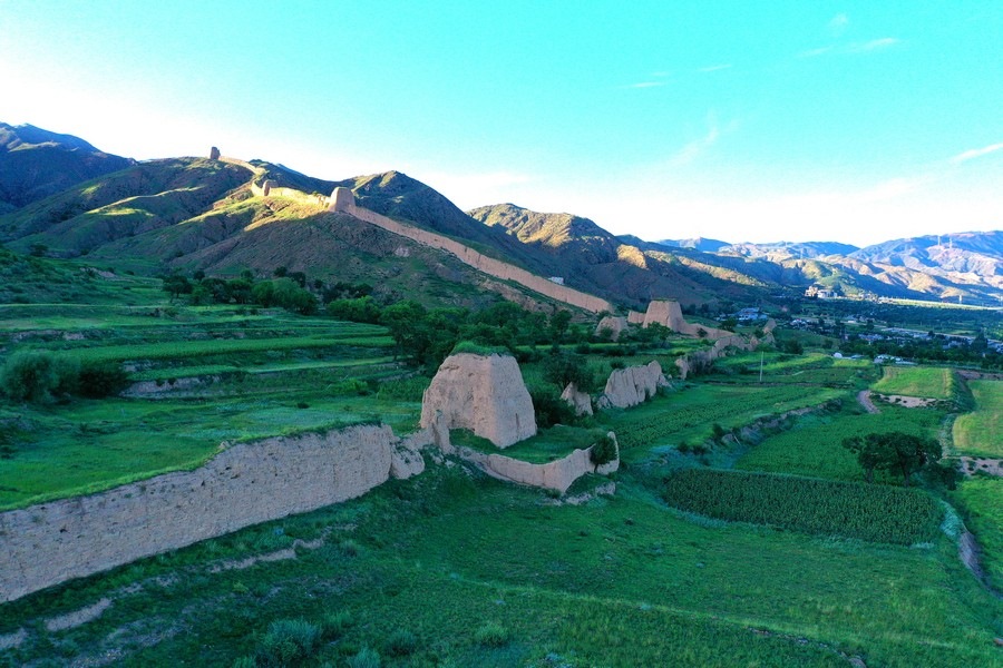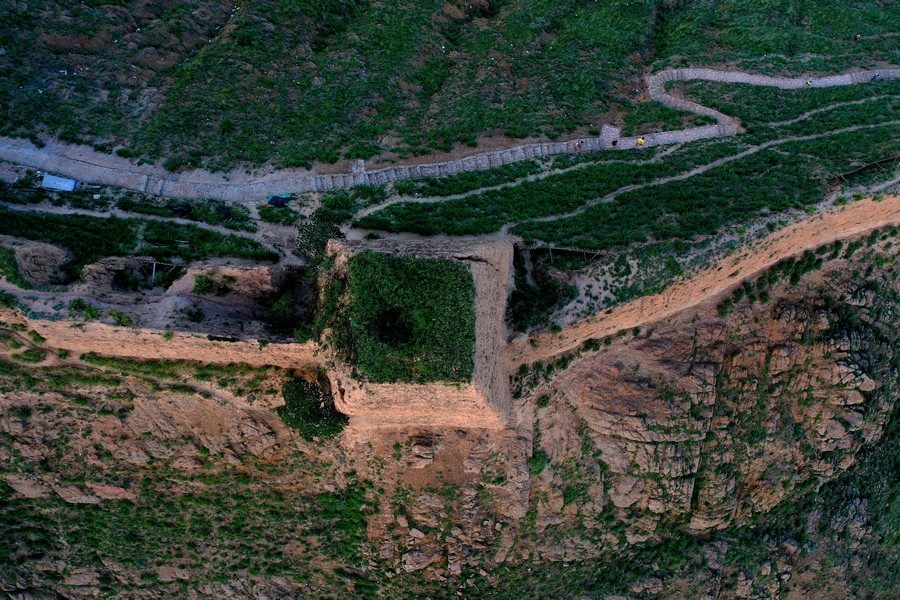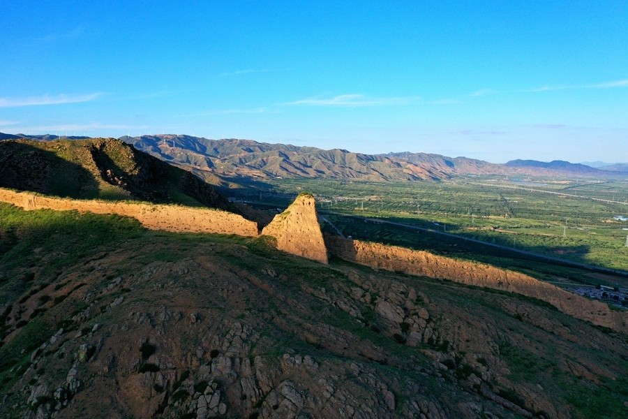 8月16日,從空中視角,俯瞰山西大同天鎮(zhèn)李二口長(zhǎng)城。