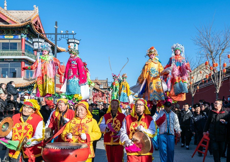 2024年2月15日,民間藝人在呼和浩特新春文化廟會(huì)現(xiàn)場(chǎng)進(jìn)行社火表演。丁根厚 攝