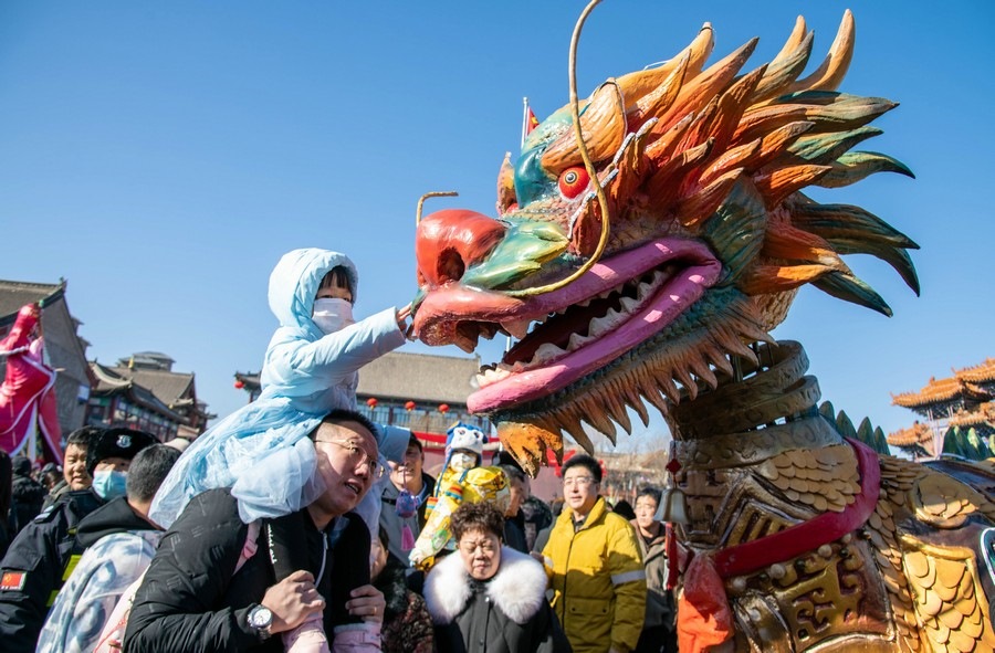 2024年2月15日,民間藝人在呼和浩特新春文化廟會(huì)現(xiàn)場(chǎng)進(jìn)行舞龍表演。丁根厚 攝