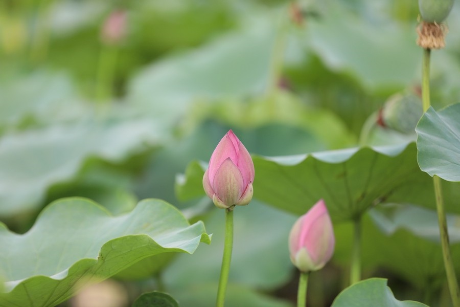 8月10日,內(nèi)蒙古烏海人民公園內(nèi)的荷花待開(kāi)放。