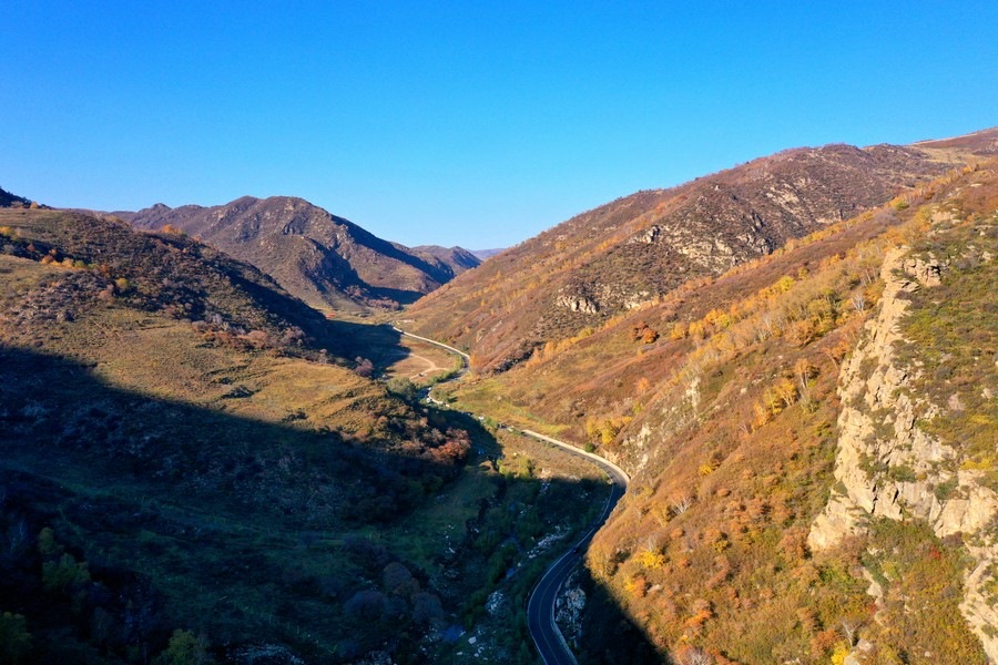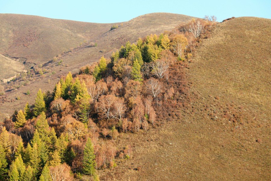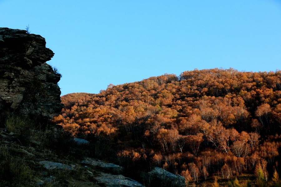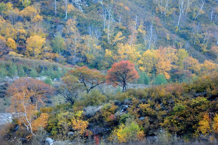 10月7日,呼和浩特大青山小井溝內(nèi),秋色五彩斑斕層林盡染。 北疆新聞記者 張楊攝影