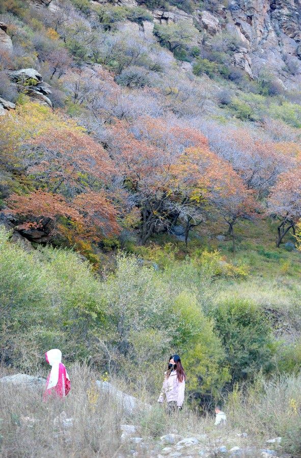 10月7日,呼和浩特大青山小井溝內(nèi),秋色五彩斑斕層林盡染,眾多游客身臨其境流連忘返。 北疆新聞記者 張楊攝影