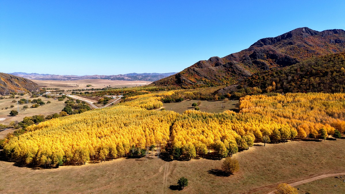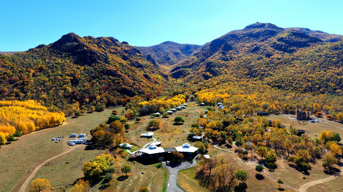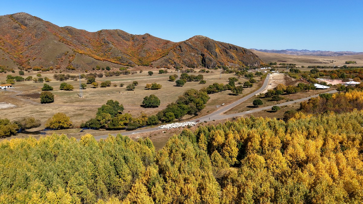 黑羊山旅游度假區(qū),海拔1319米,因這里的山形似黑羊頭得名。金秋時(shí)節(jié),整個(gè)景區(qū)被一片五彩斑斕的世界所籠罩,藍(lán)天、白云、溪流、牛羊群構(gòu)成一幅醉人的畫(huà)卷,恍若進(jìn)入童話世界。