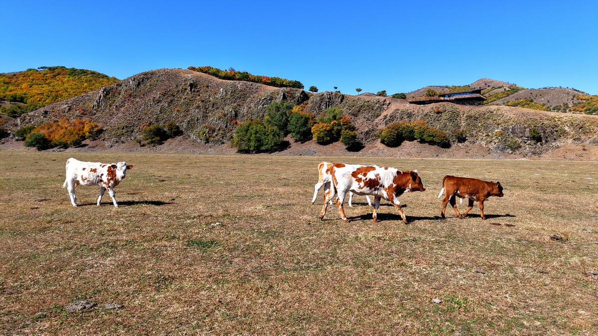 9月28日,牛群在景區(qū)內(nèi)悠閑散步 北疆新聞?dòng)浾?張楊攝影