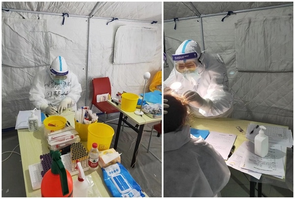 每天她們在臨時搭建的帳篷中連續(xù)工作十幾個小時,有時候檢查的人數(shù)較多,還需要加班加點,她經(jīng)常累得腰酸背痛,回到駐地一倒頭就睡著了。