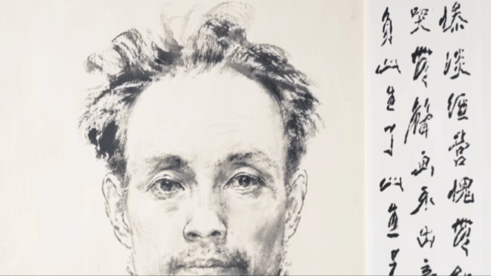 與病重時疲憊的狀態(tài)截然不同,王子武在畫作中刻畫自己的形象精神飽滿,飛揚的發(fā)絲充滿朝氣。畫作《子武自寫》中,人物眼神堅定,造型簡潔、穩(wěn)定,充滿力量感。整幅畫作表現(xiàn)了王子武將生命奉獻給繪畫的自信和決心。