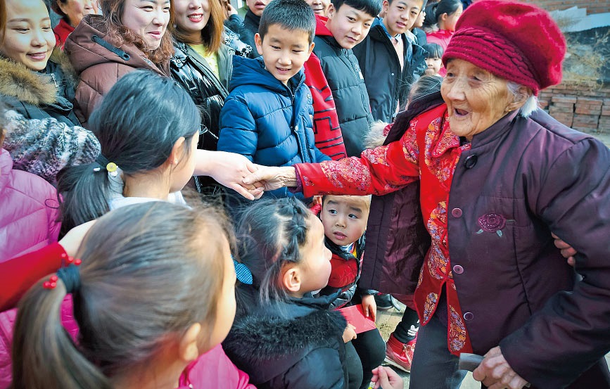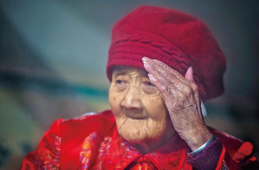 老人的兒孫們?nèi)缃翊蠖喽荚谕鈱W(xué)習(xí)、工作、做生意,大家族的成員日子都過得紅紅火火。對(duì)于老人來(lái)說(shuō),子孫滿堂是最幸福的事;對(duì)于孩子們來(lái)說(shuō),老人健康長(zhǎng)壽,也是他們最大的愿望。五世同堂,98口人,百歲老人賈先女露出幸福的笑容。