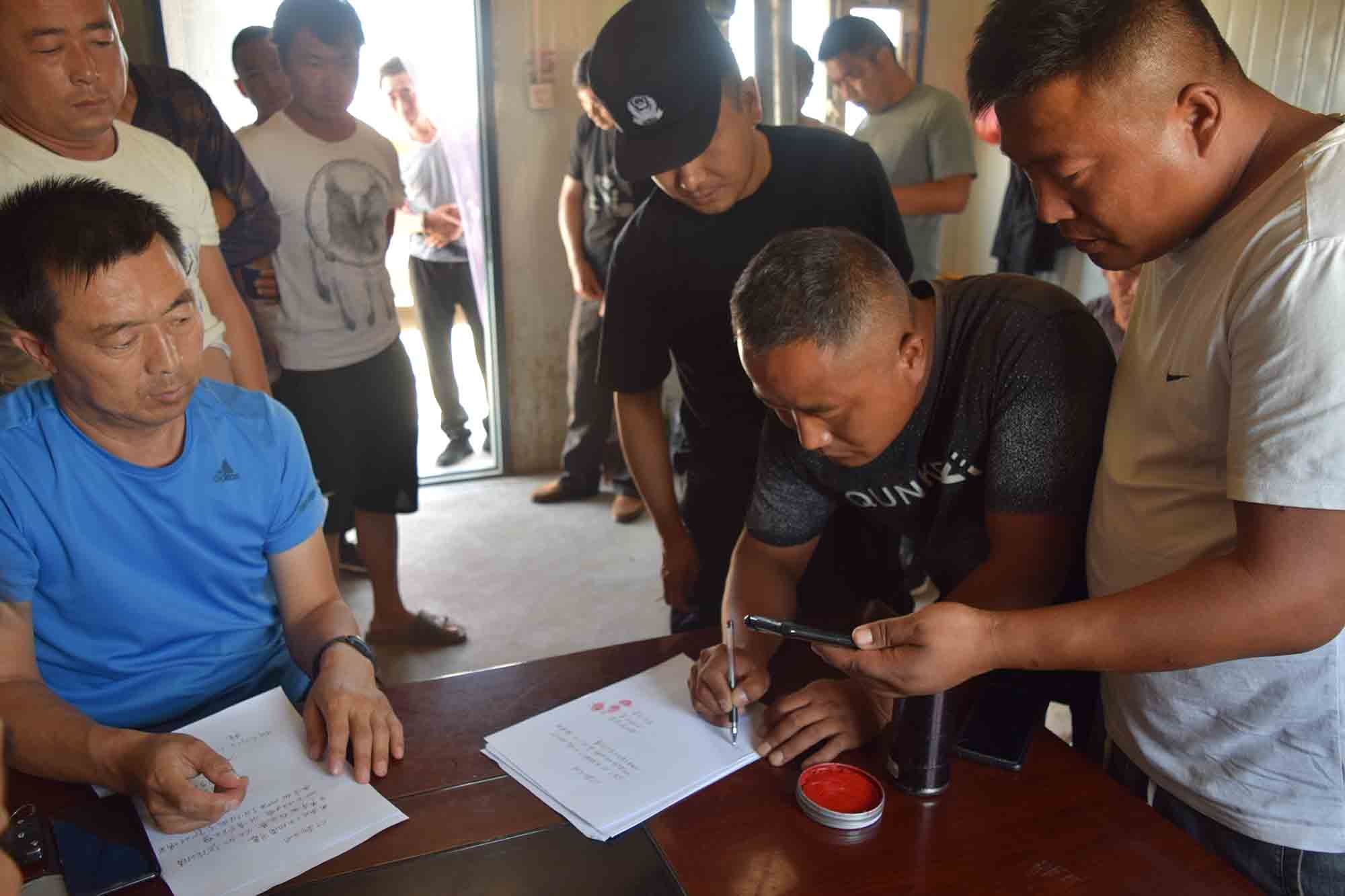 拿到付款合同的工人露出欣慰的笑容