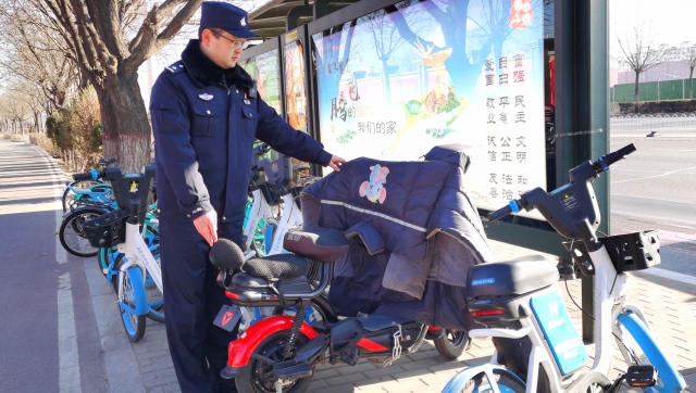 民警在公交車站牌附近實地調(diào)查走訪