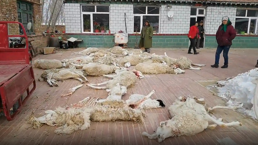 北疆新聞網(wǎng)、北疆新聞客戶端消息 據(jù)內(nèi)蒙古赤峰市翁牛特旗融媒體中心消息,1月7日下午及夜間,赤峰市翁牛特旗橋頭鎮(zhèn)隋家窩鋪村養(yǎng)殖戶宋國民家的羊棚圈多次有狼群闖入,6匹狼將羊從羊圈中趕出來后瘋狂撕咬,80多只羊一夜之間被咬死26只,有成年羊,也有剛出生不久的小羊羔。被咬死的羊橫七豎八地躺在地上,有的羊被吃得只剩下腦袋,有的羊被咬死但并沒有吃掉。