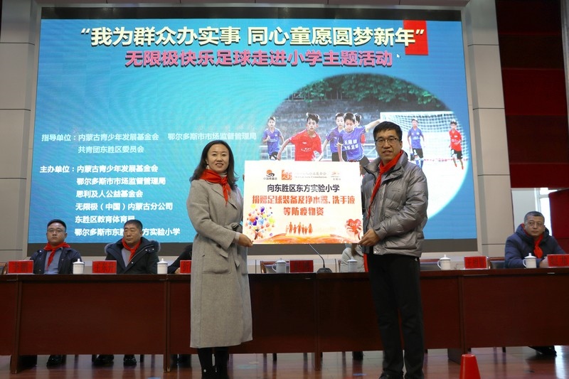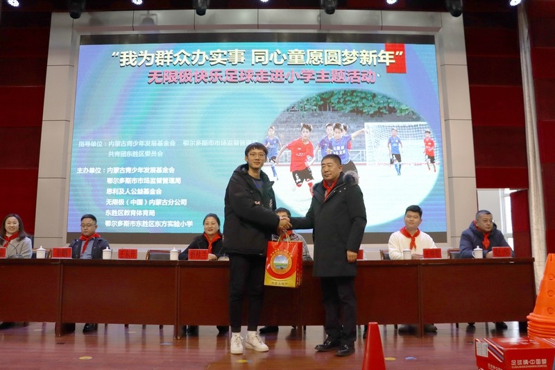 北疆新聞網(wǎng)、北疆新聞APP、北疆云消息 12月3日,思利及人公益基金會、無限極(中國)內蒙古分公司攜手內蒙古青少年發(fā)展基金會、鄂爾多斯市市場監(jiān)督管理局、共青團東勝區(qū)委員會、東勝區(qū)教育體育局、無限極內蒙古志愿者協(xié)會走進內蒙古鄂爾多斯市東勝區(qū)東方實驗小學,開展“我為群眾辦實事 同心童愿圓夢新年”無限極快樂足球慰問公益活動。為學校的孩子們送上了一份特別的禮物,由“無限極快樂足球”公益項目提供的足球、球服、球鞋、繞桿、訓練桶等足球裝備和訓練器材。孩子們在收到捐贈后,露出開心燦爛的笑容。