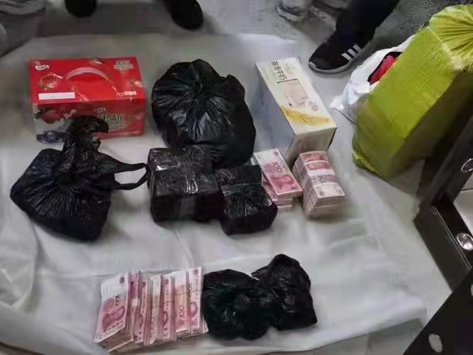 據(jù)辦案民警介紹,史某某夫婦回家所拎黑色袋子裝的是從黃某安、黃某軍手中購(gòu)買的毒品海洛因,共2416.6克;他們?cè)俅纬鲩T時(shí),兩個(gè)編織袋裝的是毒資,共275萬(wàn)余元。
