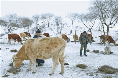喂牲畜。