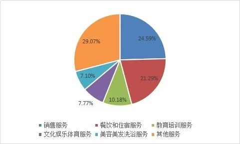 投訴量排在前五位的服務大類依次為銷售服務、餐飲和住宿服務、教育培訓服務、文化娛樂體育服務、美容美發(fā)洗浴服務。