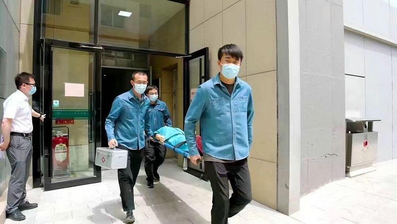 在隨后進行的消防安全應急疏散演練模擬中,消防組、醫(yī)療組與信息組各司其職,默契配合,順利完成預定的各項任務(wù)。培訓人員通過現(xiàn)場演示滅火器使用的操作程序,使參訓人員正確掌握了滅火器的操作方法。