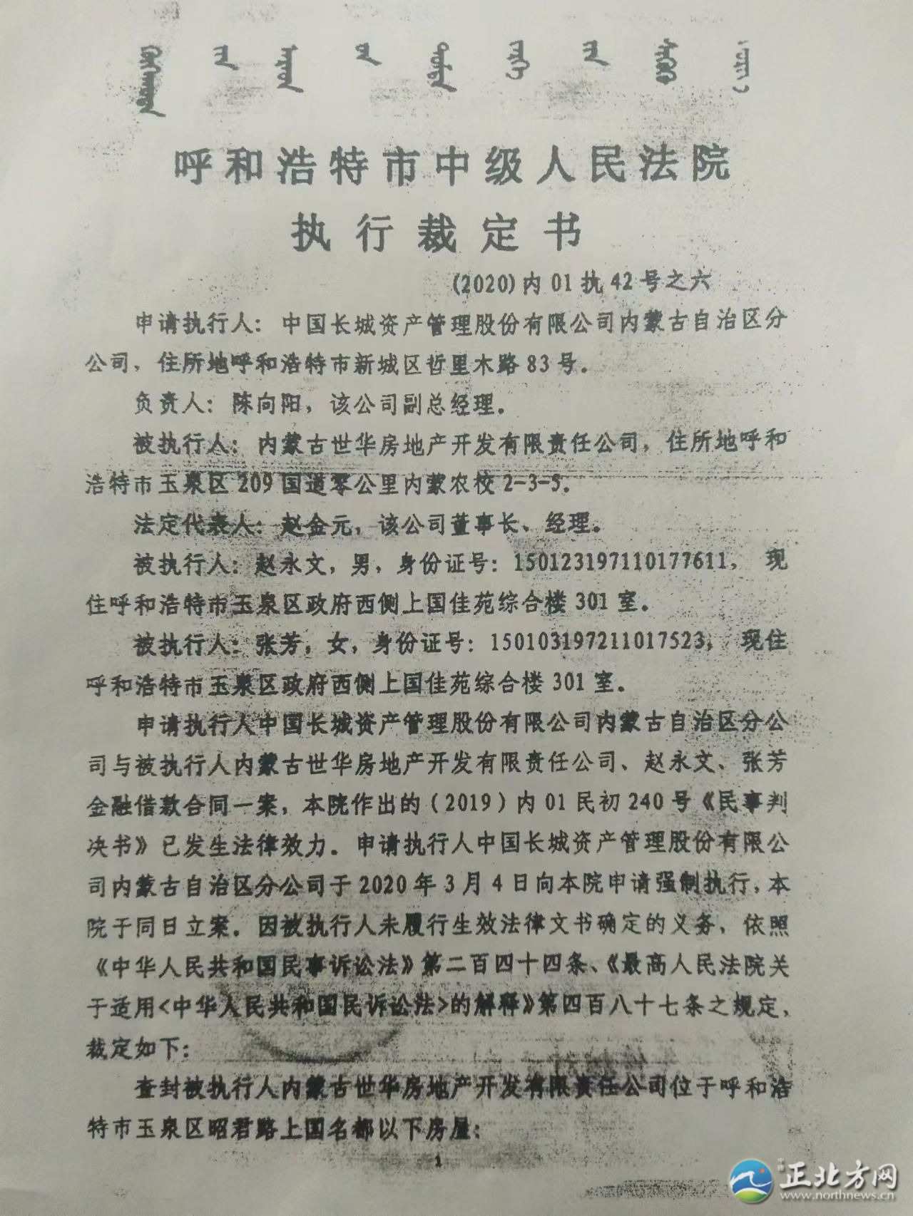 “我們小區(qū)2019年交房,2021年11月份,小區(qū)終于能辦房本了??墒窃谵k理房本的過程中,我們得知小區(qū)住宅樓100多套房子被多個(gè)法院查封了,小區(qū)辦房本的事也就停了下來。現(xiàn)在,我們找開發(fā)商內(nèi)蒙古世華房地產(chǎn)開發(fā)有限責(zé)任公司(以下簡稱世華房地產(chǎn)公司)問詢?yōu)槭裁捶课荼徊榉?,何時(shí)能夠解封,可是開發(fā)商躲著不見我們!這事究竟歸誰管呢?”近日,呼和浩特市玉泉區(qū)上國名都業(yè)主向北方新報(bào)正北方網(wǎng)記者反映。