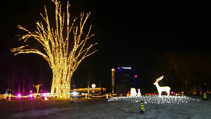 串燈、月球燈、抱樹燈、地插花、氣球燈點綴,搭配動物造型燈,整個小草公園生機勃勃?!翱茨沁呥€有雪人”,小朋友的歡呼聲打破了夜晚的寂靜。