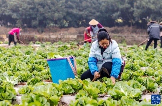 2月17日,農(nóng)戶在貴州省六盤水市六枝特區(qū)木崗鎮(zhèn)木崗沖村采收白菜。