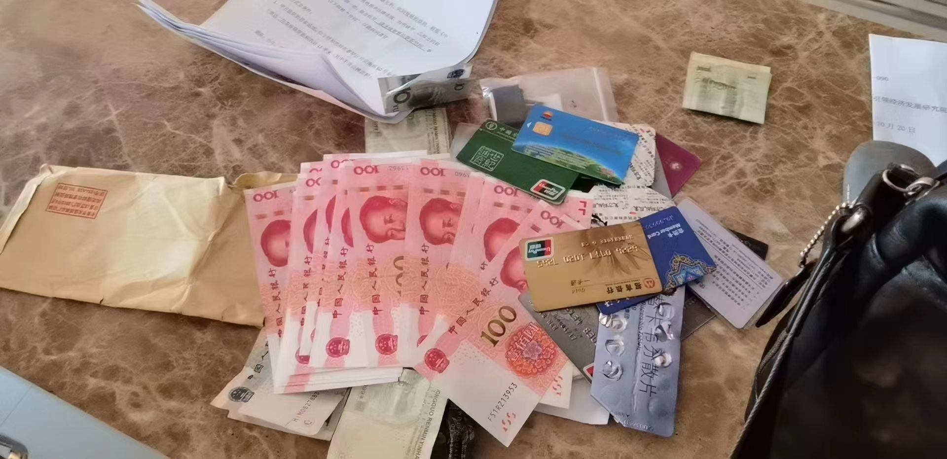 原來,當(dāng)天15時許,呼和浩特市迎新路辦事處團(tuán)結(jié)小區(qū)社區(qū)網(wǎng)格員聶霞和社區(qū)耿書記在團(tuán)結(jié)小區(qū)東區(qū)物貿(mào)樓排查工作中,發(fā)現(xiàn)一垃圾箱旁邊有一個黑色的提包,打開一看,里面裝有近3000元現(xiàn)金和身份證、銀行卡以及多個貴重物品,想到失主一定很著急,聶霞馬上根據(jù)失主身份證上的信息聯(lián)系到失主所在的社區(qū)網(wǎng)格員劉淑萍,經(jīng)過幾番周折,終于與失主取得聯(lián)系。經(jīng)過電話溝通確認(rèn),半小時后,失主劉先生趕到團(tuán)結(jié)小區(qū)社區(qū)居委會,認(rèn)領(lǐng)了自己的物品。