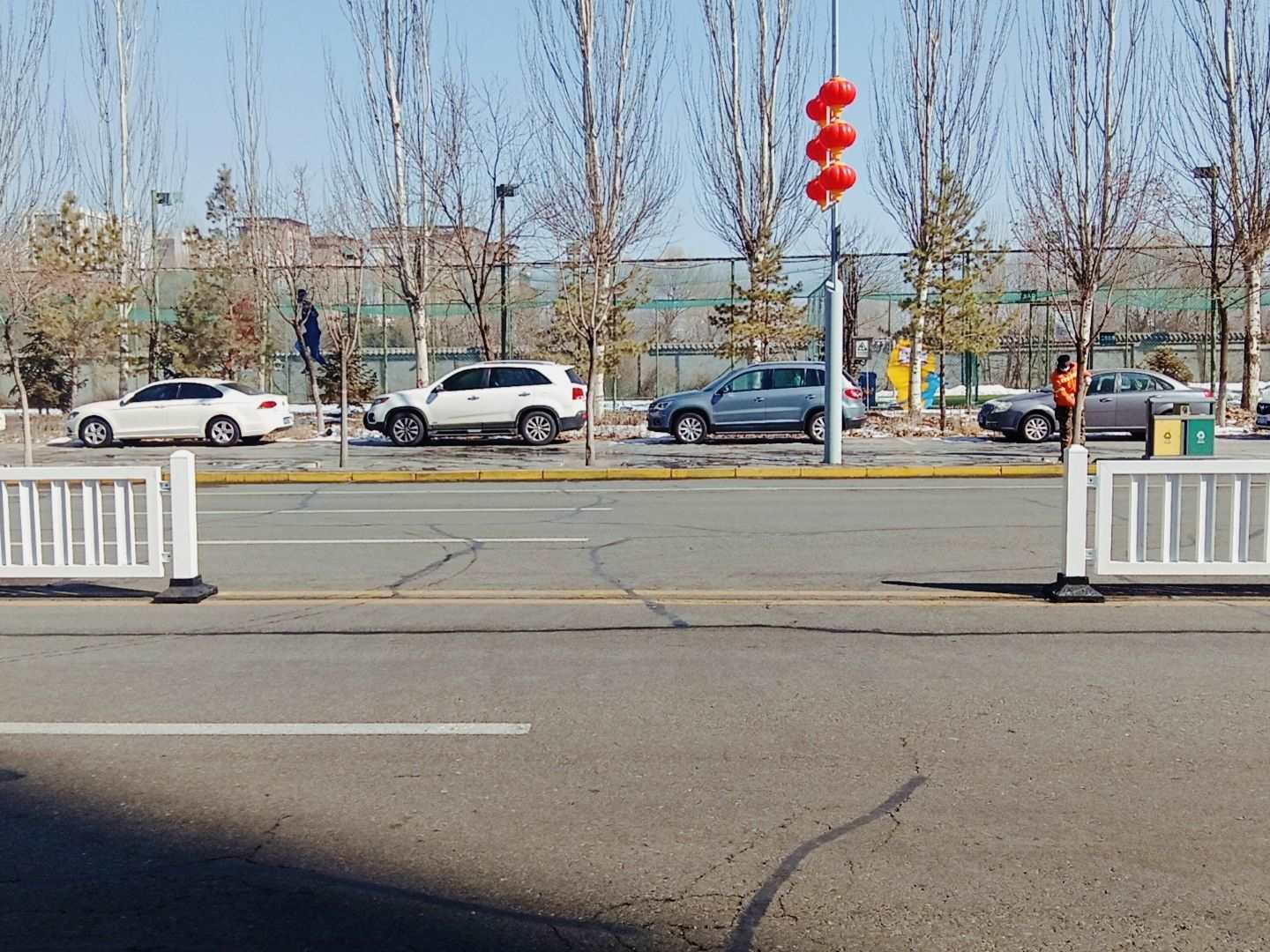 2月18日下午,記者來到興泰東河灣小區(qū),看到在北垣街和騰飛路十字路口至海東路與騰飛路交叉口之間的護欄顏色較新,護欄全長有約一公里,在小區(qū)居民進出的位置或者公交車站牌附近沒有設(shè)置開口。有一些公交車下車的乘客,看往來車輛少時便冒險翻越護欄。