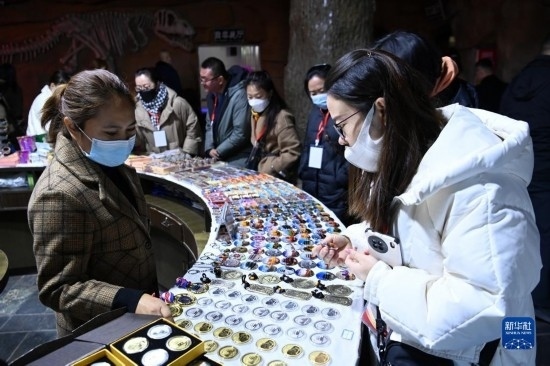 3月4日,游客在嘉峪關(guān)長城第一墩景區(qū)選購文創(chuàng)產(chǎn)品。