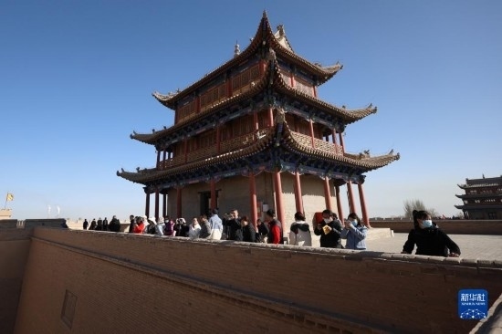 3月4日,游客在嘉峪關(guān)關(guān)城景區(qū)參觀游覽。