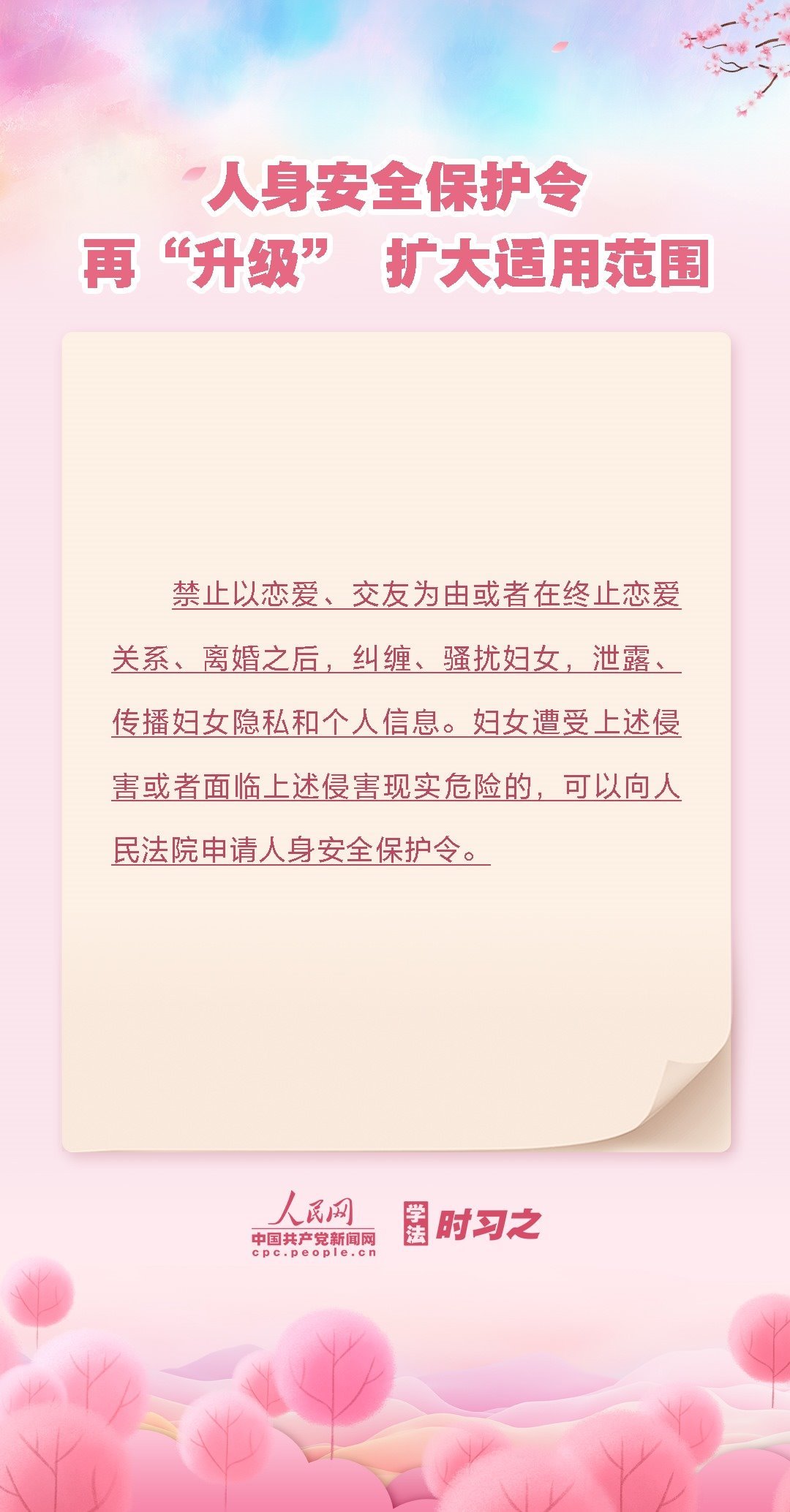 2023年1月1日,新修訂的《中華人民共和國婦女權(quán)益保障法》正式實(shí)施。此次修訂將男女平等基本國策納入國民教育體系,同時(shí)完善政府相關(guān)保障措施,預(yù)防和處置性騷擾、性侵害制度機(jī)制。這對進(jìn)一步維護(hù)婦女合法權(quán)益、改善婦女發(fā)展環(huán)境具有重大而深遠(yuǎn)的意義。今天是“三八”國際勞動?jì)D女節(jié),讓我們一起了解一下。