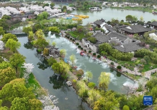 近日,浙江省寧波市植物園內(nèi)的櫻花、海棠、郁金香等競(jìng)相綻放,與垂柳、古建筑等相互映襯,構(gòu)成一幅幅和美的春景。