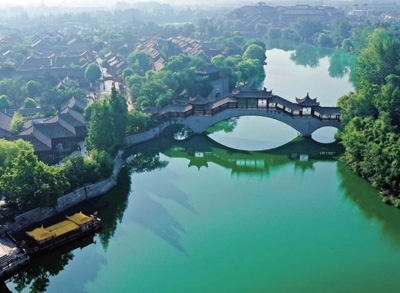 春色如畫(huà)的寧波市植物園(3月23日攝,無(wú)人機(jī)照片)。