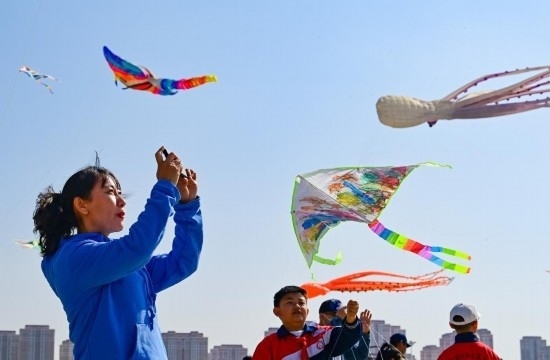 當(dāng)日,內(nèi)蒙古鄂爾多斯市康巴什區(qū)在亞洲雕塑藝術(shù)主題公園舉辦“紙鳶飛舞頌春色”系列活動(dòng),風(fēng)箏愛好者和文學(xué)書法愛好者在活動(dòng)中彩繪風(fēng)箏,詠詩(shī)賦詞,放飛紙鳶,享受春光。