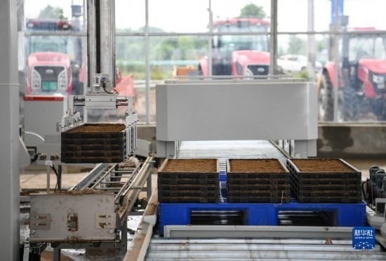 位于成都平原的四川省眉山市彭山區(qū),近年來加快建設(shè)數(shù)智水稻示范基地,通過引進(jìn)或定制循環(huán)式智能育秧機(jī)、智能水稻育秧播種流水線、秧盤智能傳輸帶等設(shè)備,提升春耕科技含量,提高生產(chǎn)效率。
