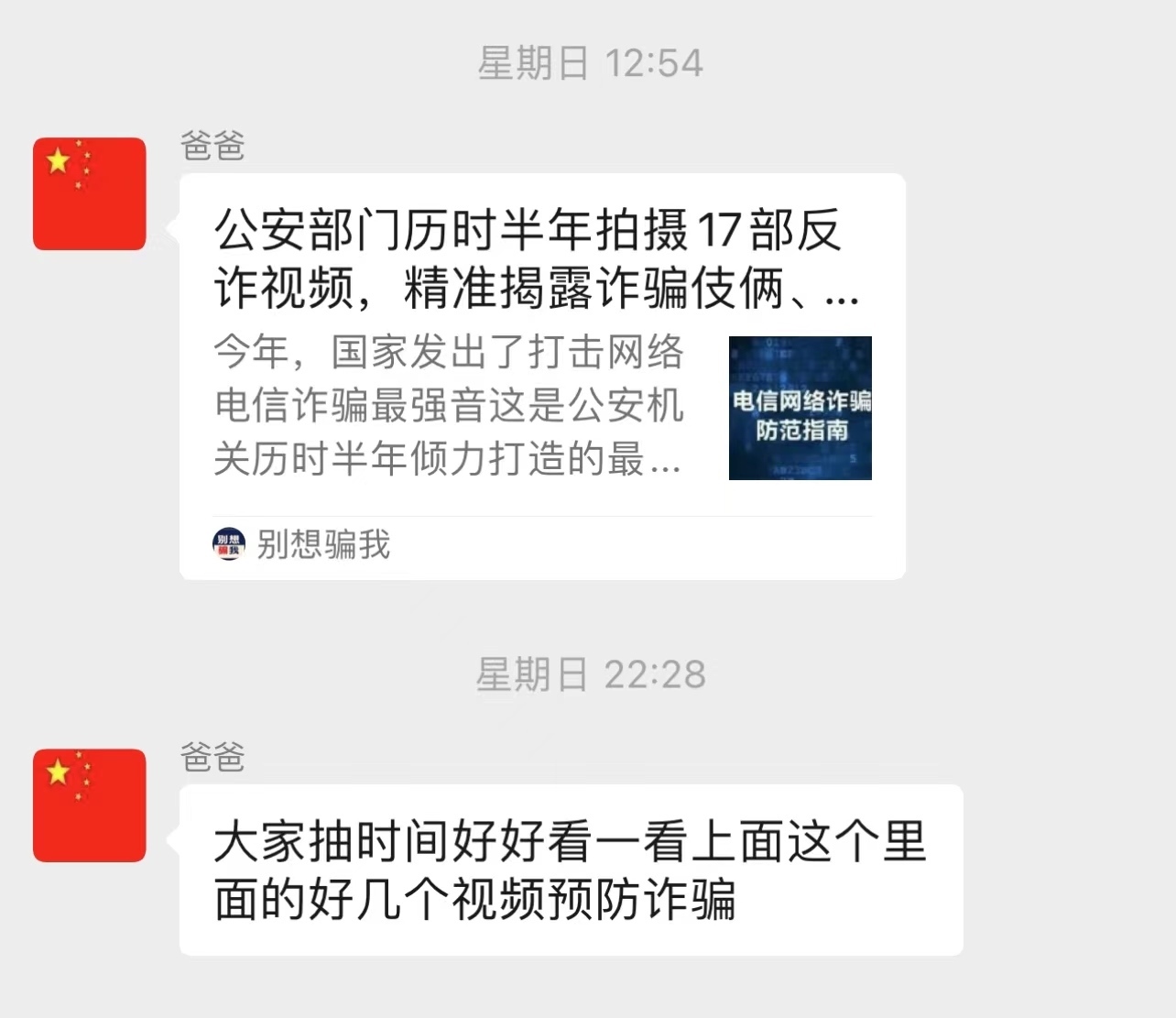 ▲上周日,張爸爸在群里分享了一則防詐騙推文卻一直沒(méi)人回復(fù)