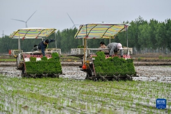 臨近立夏節(jié)氣,天津市各涉農(nóng)區(qū)組織開(kāi)展大規(guī)模機(jī)械化水稻插秧,田間地頭一派繁忙景象。
