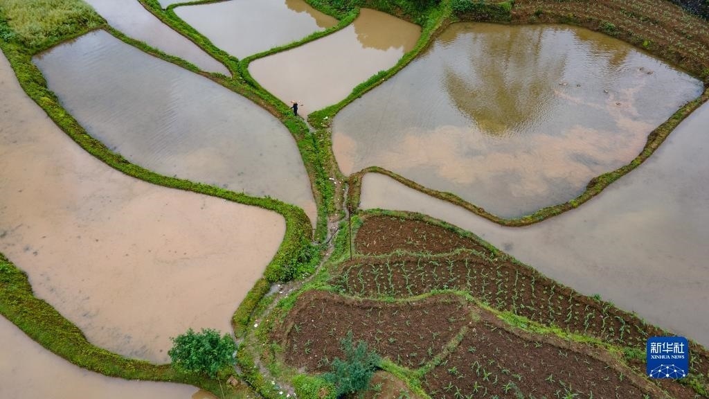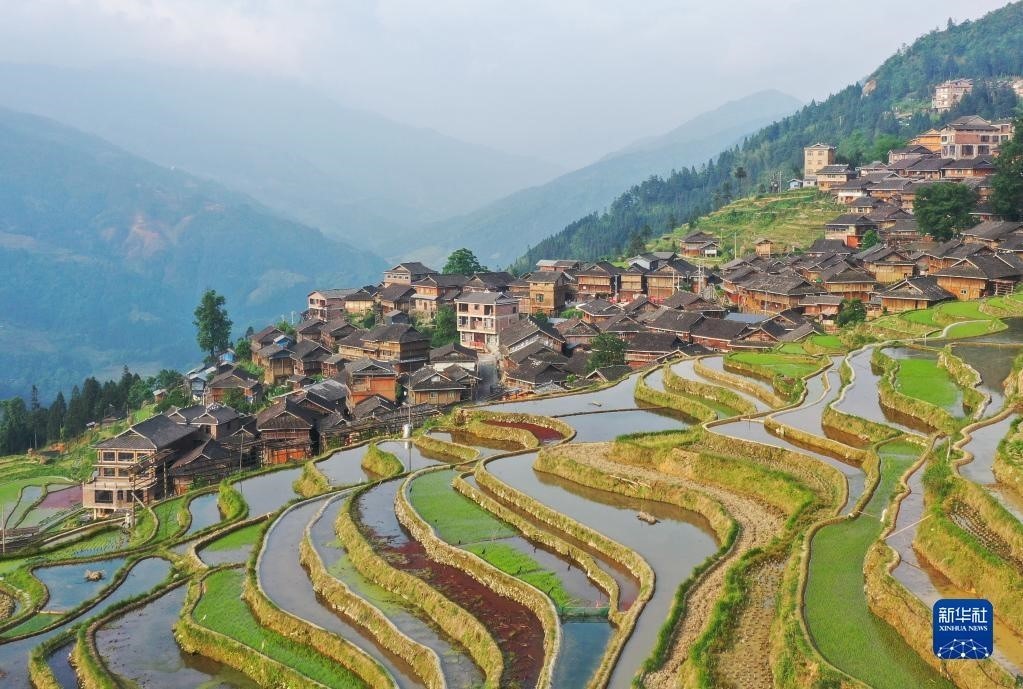 5月6日拍攝的貴州省從江縣加榜鄉(xiāng)加車村的梯田(無人機(jī)照片)。