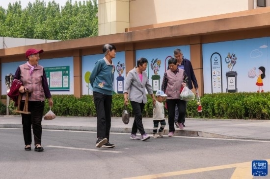 5月12日,北汝村居民在環(huán)境整潔的安置小區(qū)內(nèi)散步。