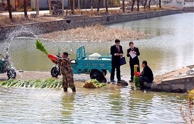 圖③:沂源法院悅莊人民法庭的干警進(jìn)村對菜農(nóng)進(jìn)行交易風(fēng)險提示。(資料圖片)